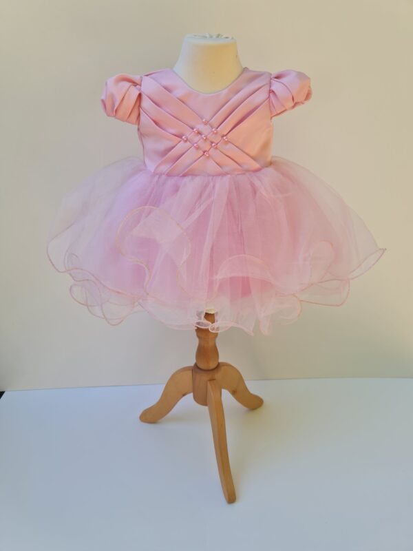 Rochie din tafta si tulle captusita cu bumbac, rochita este incheiata cu fermoar pe spate. Un design foarte șic și sofisticat pentru orice tip de eveniment.